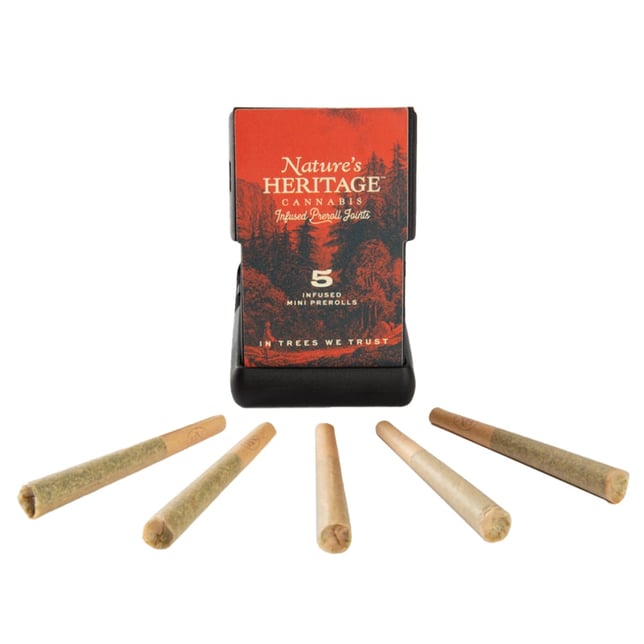 More flower, more pre-rolls, more fun. Our signature pre-rolls are now available in a 5 pack of half-gram minis. Nature's Heritage Infused Prerolls are created with the perfect ratio of 75% cured flower to 25% solventless bubble hash that results in enhanced flavor and heightened potency at your fingertips.