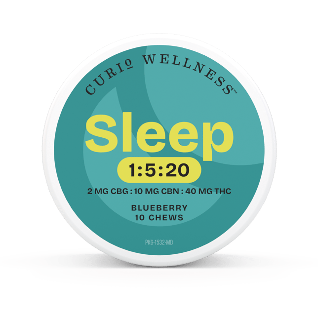 This extra strength CBG:CBN:THC chew can help promote restful sleep. With the increased ratio of CBG:CBN:THC, this deliciously sweet blueberry chew is recommended to address insomnia and racing thoughts. Precisely infused with CO2 distillate made from Curio Wellness flower, these chews are gelatin free and made with natural flavors and colors. Available in a 1:5:20 ratio (2mg CBG: 10mg CBN : 40mg THC) dose. These chews are manufactured in a cGMP facility
